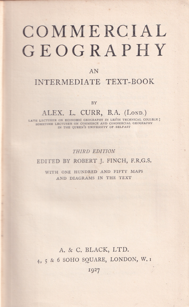 Commercial Geography Written by Alex L. Curr Teacher of Writing, Book Keeping, Shorthand and Typewriting at Madras 1904 - 1910 First published in 1915